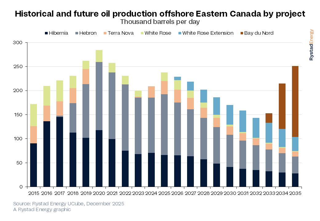 Offshore Eastern Canada remains a region of profound geological potential, characterized by large, under-explored sedimentary basins that could hold billions of barrels of oil and gas. Decades of production from the proven Jeanne d’Arc Basin have established a robust petroleum system, yet significant exploration upside remains in deepwater frontier areas such as the Orphan Basin and Flemish Pass. Yet, recent drilling campaigns targeting these frontier areas have faced mixed commercial results, leading to a critical industry reassessment of risk versus reward. Consequently, the lack of immediate commercial discoveries has intensified the focus on the region’s proven acreage. Aging fields in Eastern Canada, where production is set to decline significantly from 2025 onward, underscore the need for successful projects, ideally large-scale deepwater developments. This looming decline highlights the urgency to offset projected output drops.