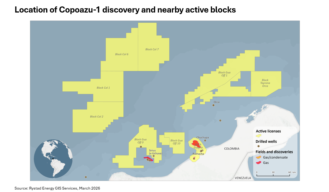 Petrobras’ Copoazu discovery offshore Colombia, revealed last week, marks a meaningful, though incremental, step in advancing a nascent deepwater gas play in the Lower Magdalena Basin. While early results from the well in the GUA-OFF-0 Block – operated by the Brazilian state player alongside partner and local peer Ecopetrol – indicate gas across multiple targets, key metrics such as reservoir quality and recoverable volume remain unconfirmed. As a result, the find is best viewed as additive to the Sirius complex – discovered by the same partnership in 2022 – than transformative on its own. Even so, the new discovery strengthens confidence in fairway continuity and supports a shift towards more systematic, multi-well appraisal, suggesting hydrocarbons are not confined to a single structure. Although not material in isolation, the discovery could help ease Colombia’s supply-demand imbalance over time if further appraisal and development prove.