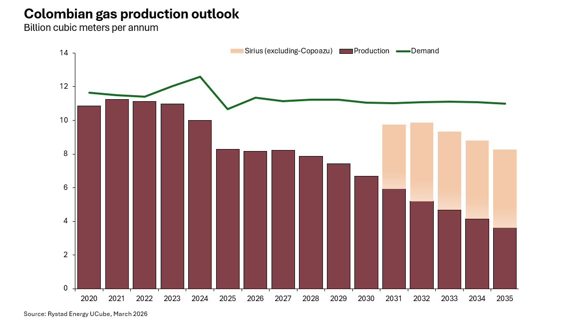 Copoazu-1 appears to form part of a broader, multi-well exploration and appraisal effort rather than an isolated test. The sequence of Sirius-1, Sirius-2 and Copoazu-1 suggests a gradual shift toward delineating the extent of the play. The accumulation of discoveries across the Sirius–Copoazu trend is encouraging and comes as Colombia faces a tightening gas balance, with around 9 billion cubic meters per annum of production declining and liquefied natural gas (LNG) imports rising.