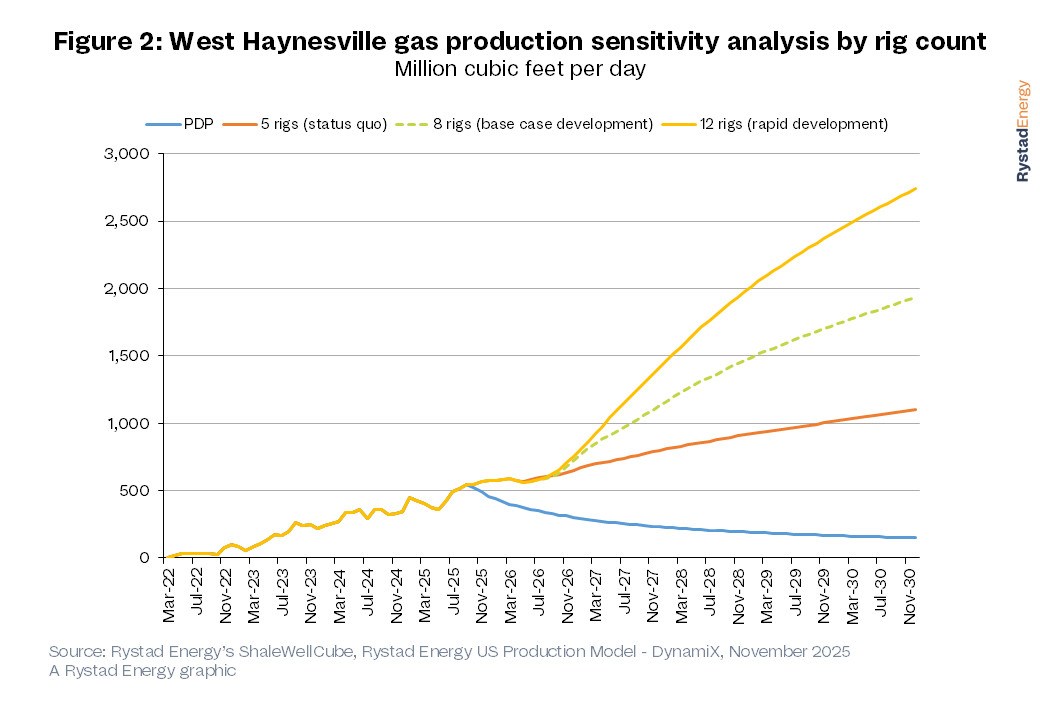 Comstock, a public E&P majority-owned by Dallas Cowboys owner Jerry Jones, has been the leader in the area, deploying extensive capital and rigs to delineate the play. Comstock has maintained four rigs in the Western Haynesville for much of 2025, at one point double its legacy Haynesville count, and now intends to run four rigs in each area moving forward into next year.