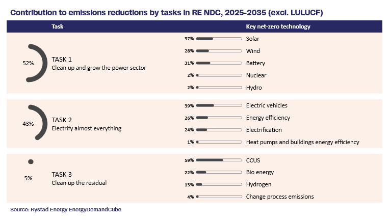 Task 3 – Clean up the residual: Tackling the last 5% of emissions will require scaling CCUS, hydrogen and bioenergy. These technologies are now featured in more NDCs, and projects are underway, but deployment lags well behind renewables and electrification. Achieving long-term impact demands a step change in scale and pace.