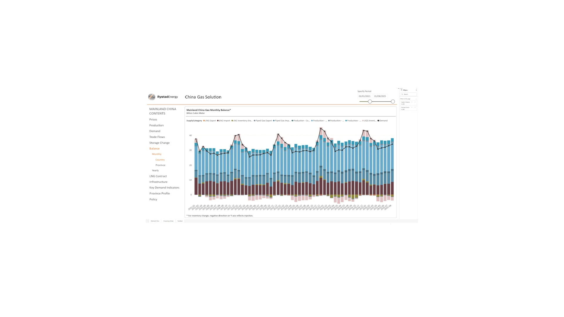 Comprehensive coverage of China’s gas market value chain, including production, demand, trade flows, infrastructure, and policy. Provides a bottom-up approach to analyse market fundamentals and track evolving supply sources and demand sectors. Includes detailed insights into LNG contracts, storage, and provincial profiles, with historical and forecast data. Supports evaluation of trading and investment opportunities, while interpreting the impacts of regulatory and policy developments on China’s fast-growing gas market.