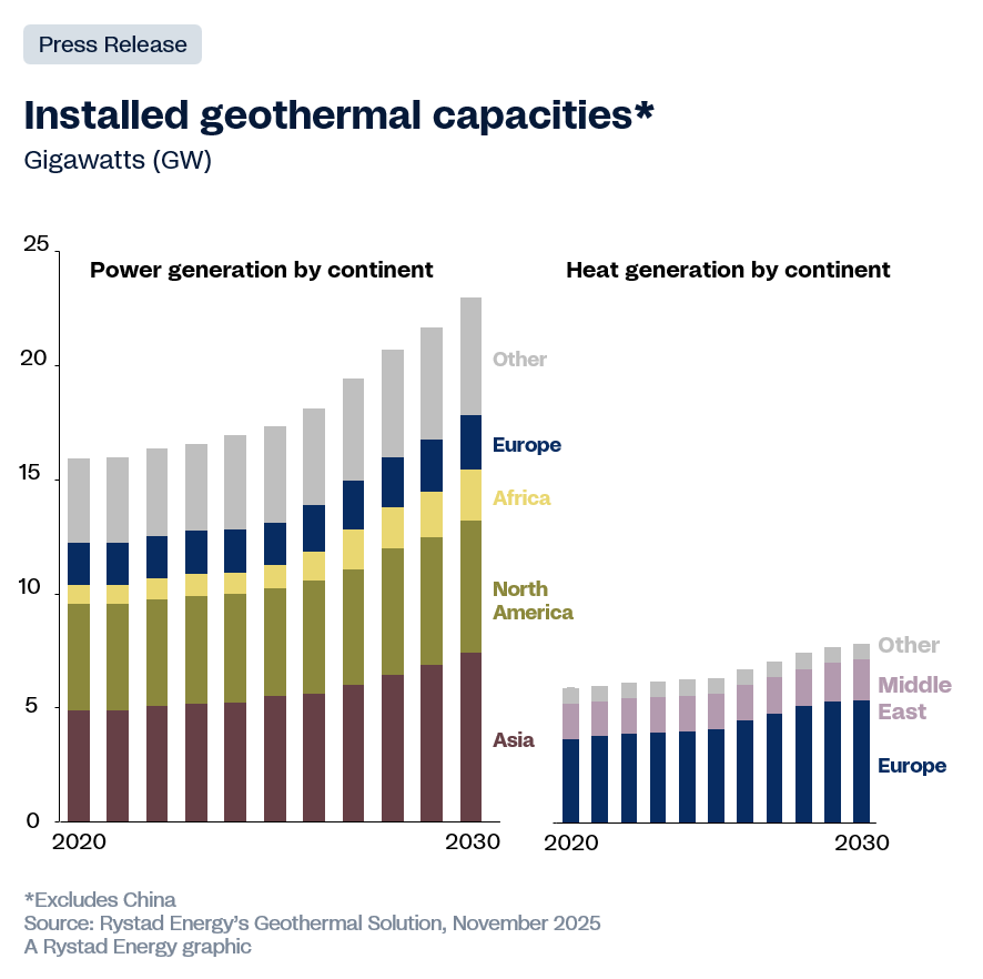 Global geothermal investment is entering a period of accelerated growth, with capital expenditure (capex) expected to climb about 20% annually through 2030, according to Rystad Energy’s latest geothermal economics model. This momentum comes as geothermal energy, produced by tapping heat from deep within the earth, is no longer defined only by mature hubs in Southeast Asia and the US. Interest in regions such as Africa and Europe has been building at a measured pace, contributing to a steady broadening of activity worldwide. Meanwhile, the distribution of spending remains relatively stable across development categories due to consistent cost structures in drilling, surface facilities and steamfield infrastructure.
