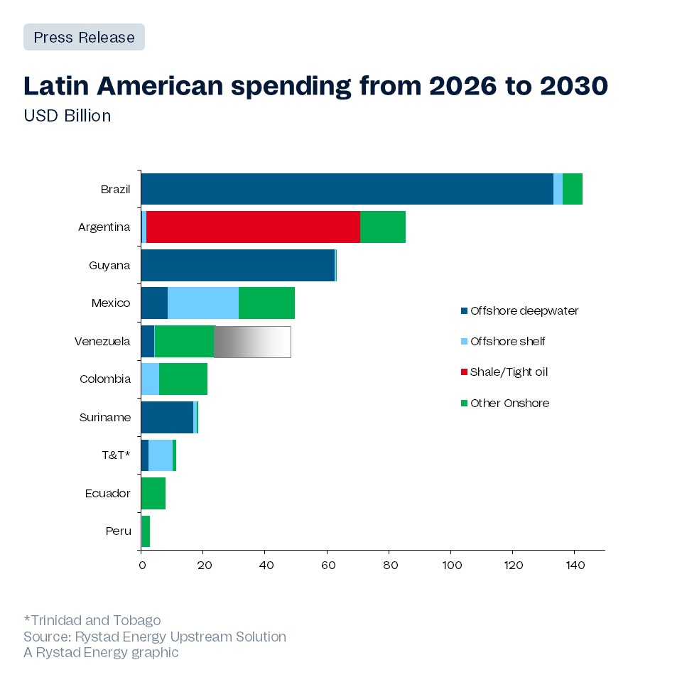 Argentina, Guyana and Brazil are poised to lead Latin American oil production growth in 2026, even though the possible return of Venezuelan barrels poses questions for the region’s long-term capital expenditure strategy. While the supermajors continue to flag Venezuela as difficult to underwrite on a long-term basis, traders and players like Trafigura and Hillcorp are increasingly drawn to near-term, structured opportunities in the country, signaling a possible rebalancing of portfolios. Although legal uncertainties persist and institutional legitimacy remains thin, recent reforms, such as the lifting of sanctions and the overhaul of Venezuela’s hydrocarbons law, reinforce US efforts to market Venezuelan barrels. Rystad Energy analysis estimates that flagship projects in Argentina, Guyana and Brazil, which are expected to add more than 700,000 barrels per day (bpd) of oil production this year, will continue to outcompete Venezuela through at least 2030. In the short term, 300,000 bpd of Venezuelan supply could be added to the market, but the likelihood of shifting investment from current Latin American powerhouses to beleaguered Venezuelan infrastructure amid an uncertain business environment remains limited.