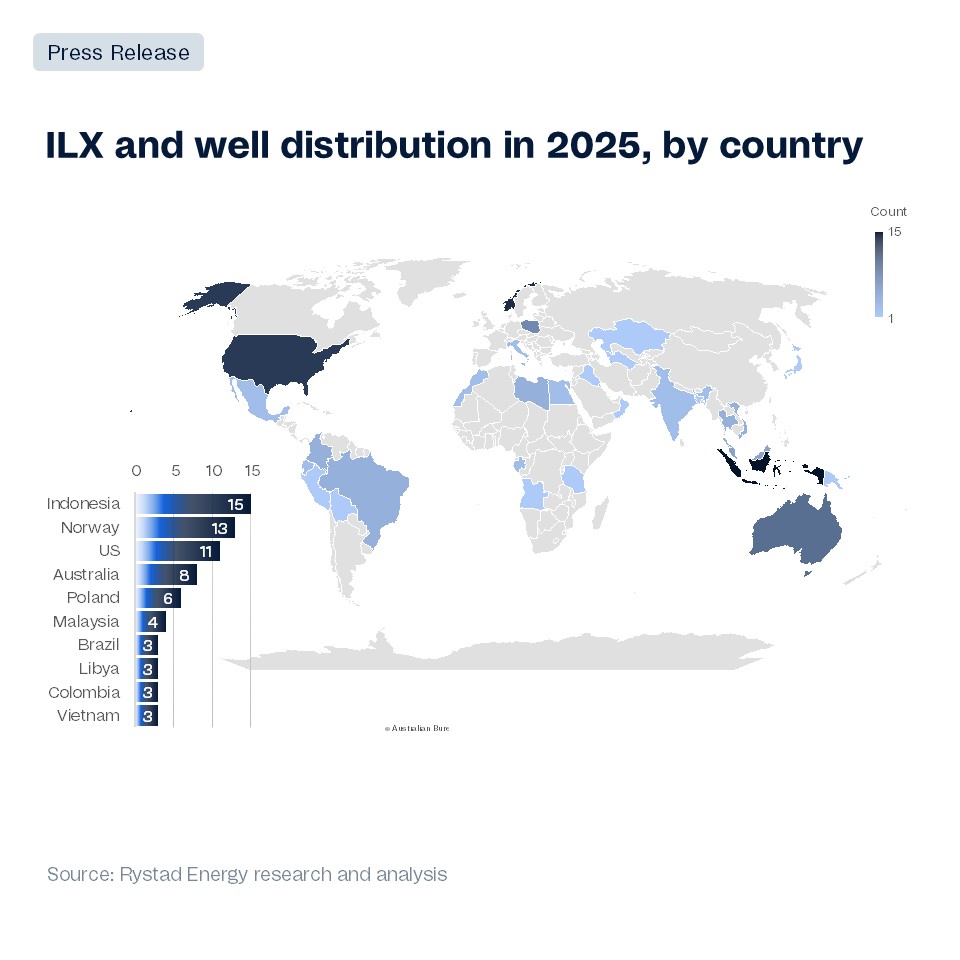 Of the 100 ILX wells planned for 2025, Southeast Asia is set to witness the highest activity, followed by Western Europe and North America. In Southeast Asia, ILX drilling is spread across four countries – Indonesia, Malaysia, Vietnam, and Thailand – spanning 15 distinct basins, highlighting the region’s diverse ILX opportunities. In Western Europe, ILX activity is concentrated entirely in Norway. Meanwhile, the deepwater region of the US Gulf of Mexico is expected to be a major ILX hotspot in 2025.