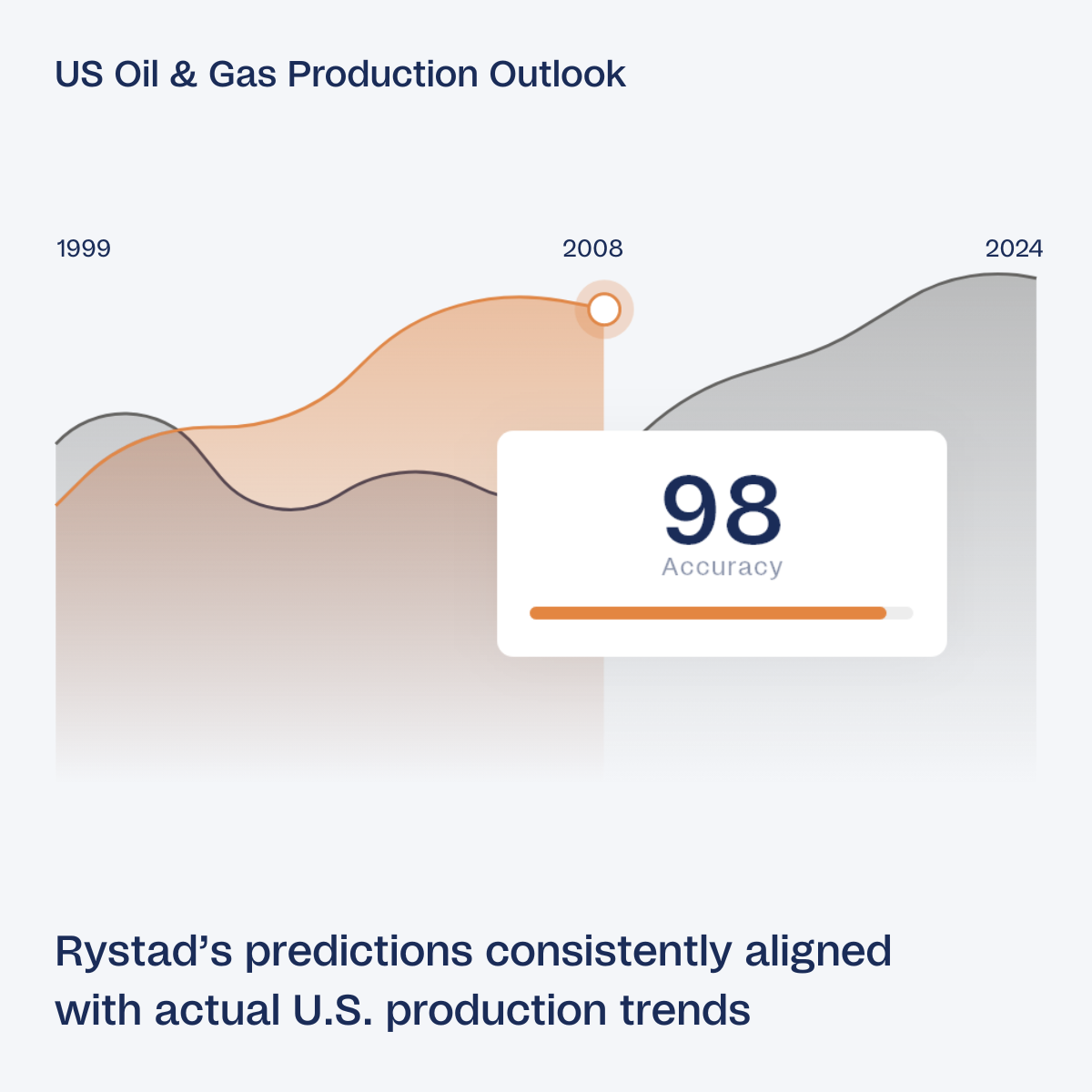 Trust is built on accuracy, transparency, and consistency. For decades, Rystad Energy has supported decision-makers across the global energy industry with independent data and analysis they can rely on, even in rapidly changing and complex markets. Our insights are grounded in rigorous methodologies, continuously updated intelligence, and deep expertise across the full energy value chain.